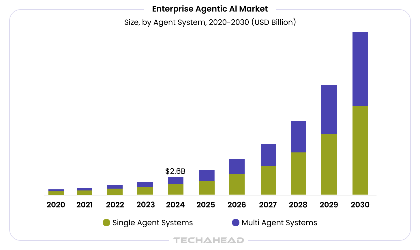Consequently, the global enterprise agentic AI market size that was estimated at $2.58 billion in 2024 is now projected to reach $24.50 billion by 2030, showing a CAGR of 46.2% from 2025 to 2030. This immaculate growth is a clear implication that Agentic AI adoption is substantial. Thus, organizations looking for custom agentic AI development want to move beyond experimentation and invest in scalable, governed systems that deliver measurable business outcomes while integrating seamlessly with their existing enterprise architecture.