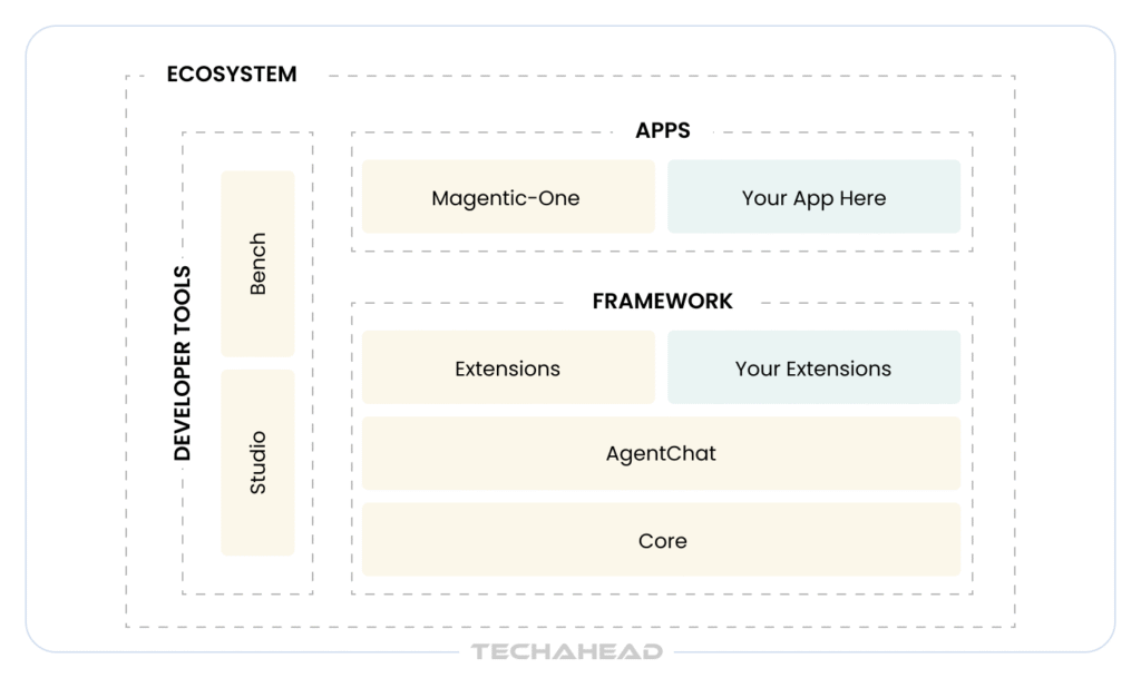 Agent Frameworks: These provide the foundation for creating, deploying, and managing individual AI agents. Modern frameworks like LangChain, AutoGen, and CrewAI offer pre-built components for common agent patterns, reducing development time while ensuring consistency across implementations.