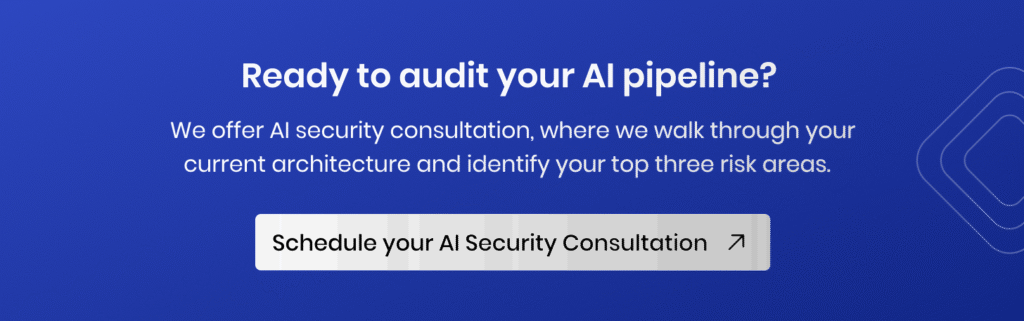 Scoring Guide: If you answered “No” or “Not sure” to 3 or more of these points, your AI pipeline has exploitable gaps. In our experience across enterprise engagements, most organizations flag 5 or more. That’s not unusual, but it is urgent.
