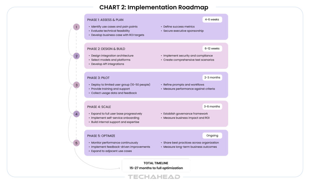 Plan for Continuous Improvement: Initial deployment is just the beginning. Systematic feedback collection and incorporation drives compounding performance gains—organizations see 15-20% improvements over time through iterative refinement.