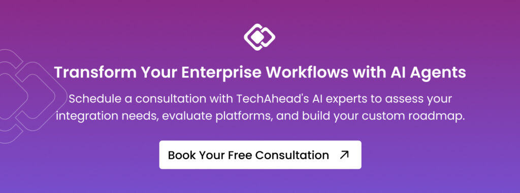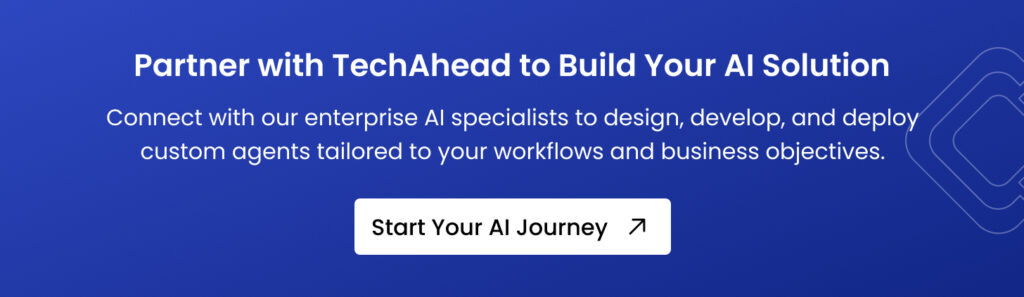 Whether you’re building customer service copilots, automating back-office workflows, or creating industry-specific AI agents, TechAhead’s proven methodology ensures you select platforms that fit your specific requirements and deliver ROI from day one.