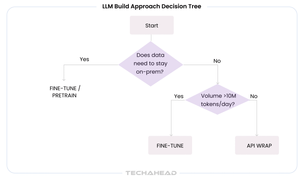 Our team at TechAhead offers full custom LLM development services covering all three build tiers — from API-wrapped RAG systems to ground-up pretraining for enterprise clients with strict data residency requirements.