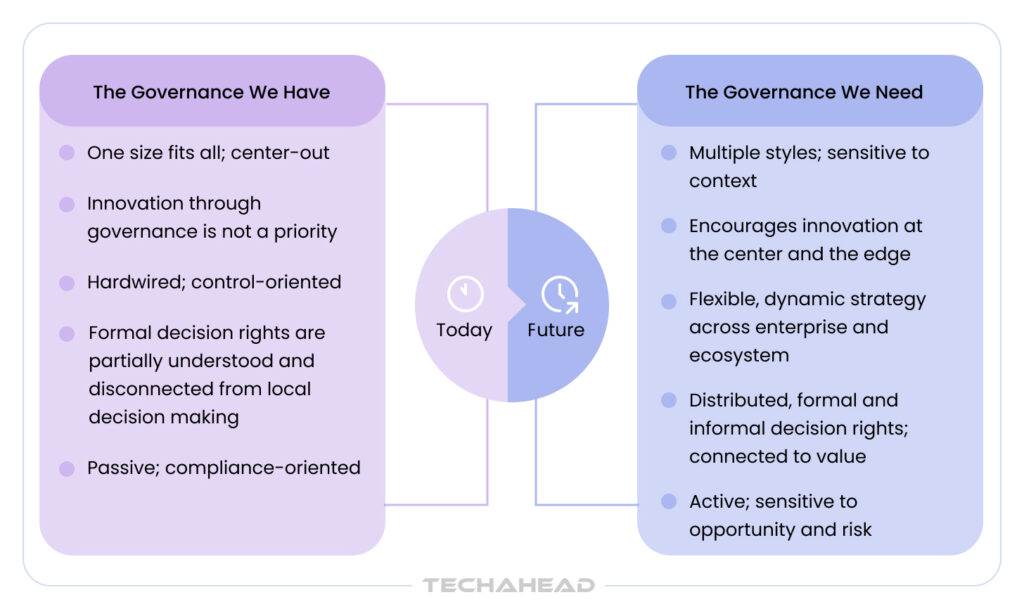 Effective governance requires architectural capabilities that transform policies from documentation into automated enforcement mechanisms.