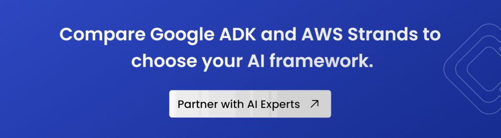 Both of these are open-source frameworks designed to help enterprises build/deploy/manage powerful agentic AI systems. However, Google ADK is good for cloud-native orchestration, modular agent architecture, and deep integrations with Google Cloud tools and AWS Strands Agents is model-driven good for AWS ecosystem. For your enterprise use, choosing the right solution depends on your preferred cloud provider and integration needs. The following table will help you find the right ADK for your enterprise: