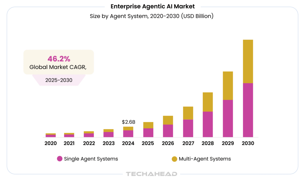 - Agentic AI market grows from $2.58B (2024) to $24.50B (2030) at 46.2% CAGR.