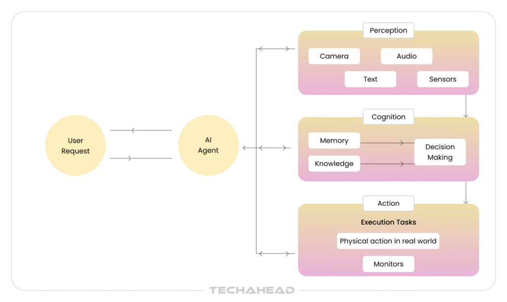 They receive high-level objectives, then break them down through reasoning: first setting sub-goals, then planning step-by-step actions, and finally executing tasks while adapting to changes. For instance, an agent might analyze data, call tools, and iterate until completion. This shift allows complex, multi-step workflows in enterprises that transform passive tools into proactive partners.
