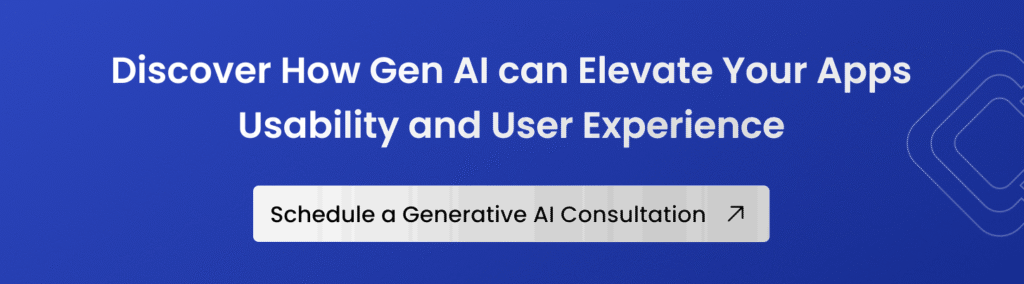 Generative AI in mobile apps also enhances the user interface designs. It makes the apps visually appealing and user-friendly. Design with artificial intelligence automatically generates design elements, ensuring that the app’s UI is both functional and aesthetically pleasing.