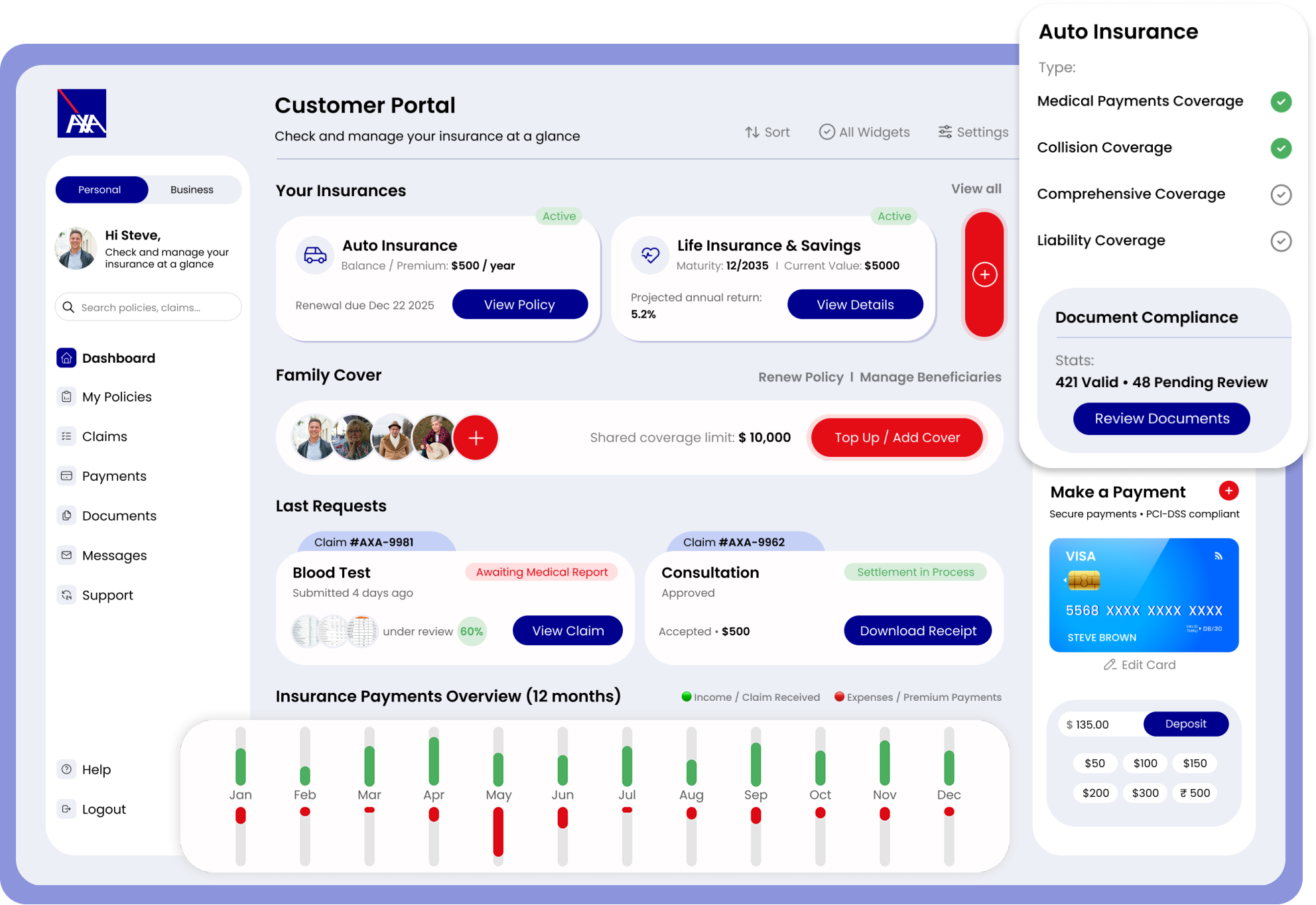 AXA customers can now connect directly with the customer service executives right from the app, and initiate a dialogue.