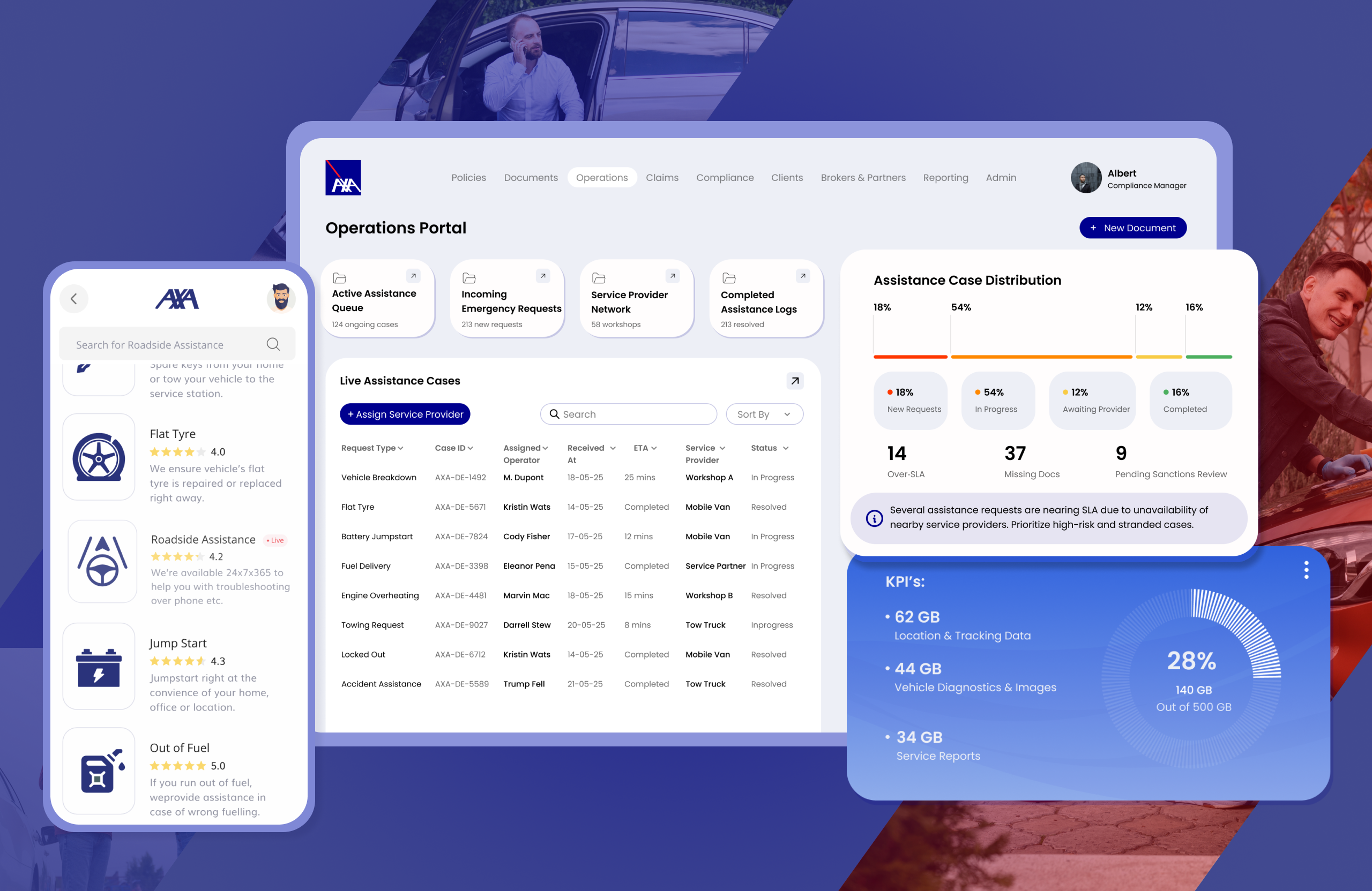 AXA customers were able to get timely roadside assistance, due to